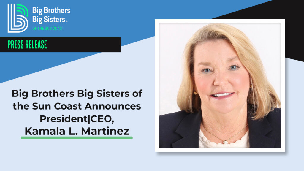 “I am deeply honored that the Big Brothers Big Sisters of the Sun Coast Board of Directors has entrusted me to lead the organization into its next phase of growth, shared Big Brothers Big Sisters of the Sun Coast CEO, Kamala Martinez. “I look forward to engaging more Bigs to have meaningful relationships that empower and positively impact more Littles.”